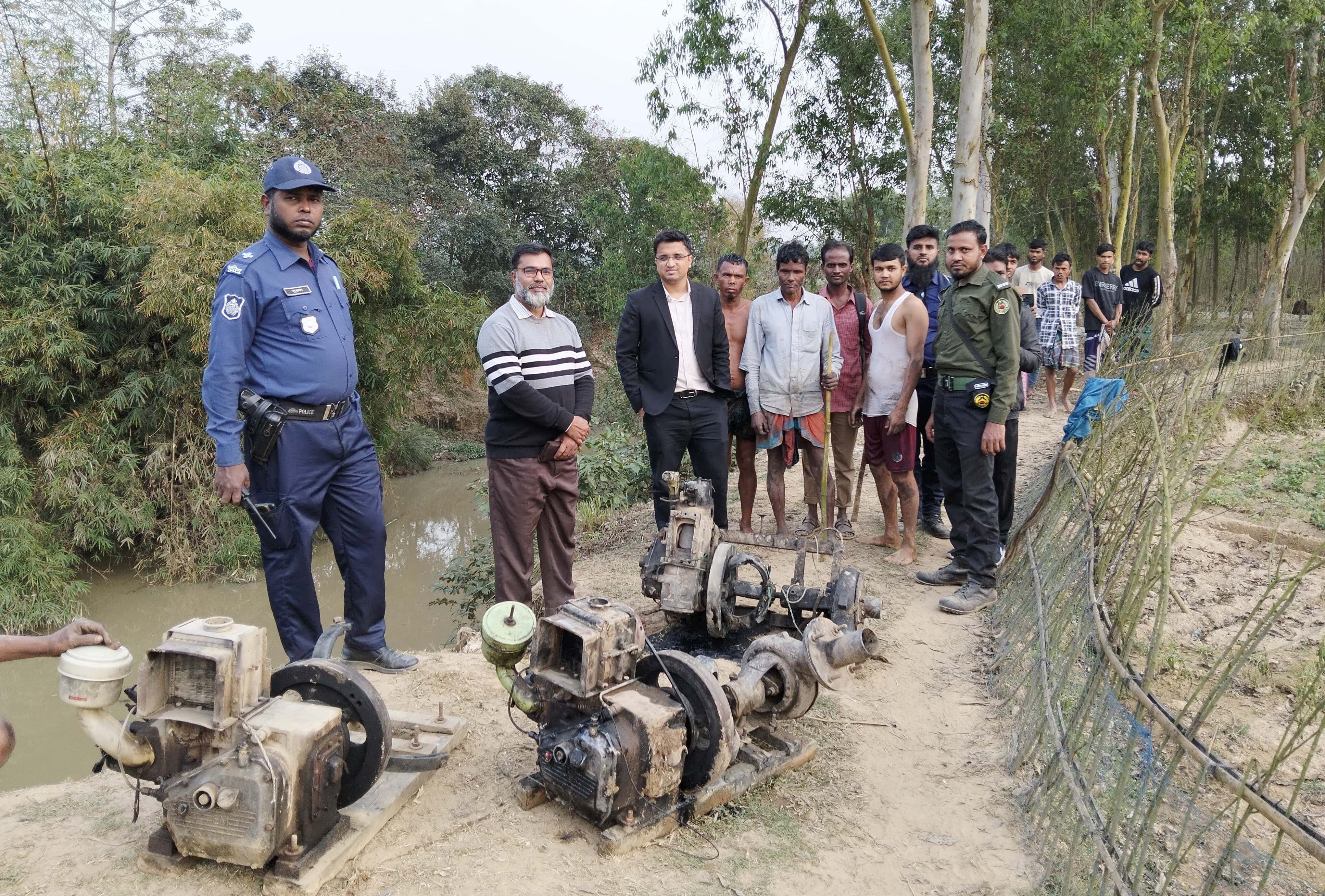 চুনারুঘাট উপজেলায় অবৈধ বালু ও মাটি উত্তোলন রোধে কঠোর অবস্থান নিয়েছে উপজেলা প্রশাসন। বুধবার (১৪ জানুয়ারী) সকাল ১০টা ৩০ মিনিট থেকে সন্ধ্যা ৬ টা পর্যন্ত উপজেলার বিভিন্ন এলাকায় একযোগে মোবাইল কোর্ট পরিচালনা করা হয়। এসময় নদী হতে অবৈধভাবে বালু উত্তোলনের কাজে ব্যবহৃত ২টি ট্রাক্টর ও ১০টি মেশিন এবং বেশ কিছু পাইপ জব্দ করা হয়। অধিকন্তু ইজারাবহির্ভূত জায়গা থেকে বালু উত্তোলনের অপরাধে চুনারুঘাট পৌরসভার মধ্য-আমকান্দির আব্দুল হকের ছেলে মো: অলিউর রহমান সোহাগ (৩০) কে ২ (দুই) লক্ষ টাকা অর্থদণ্ড প্রদান করা হয়।